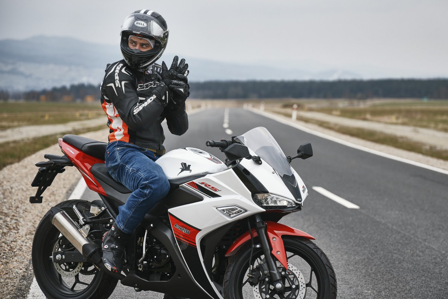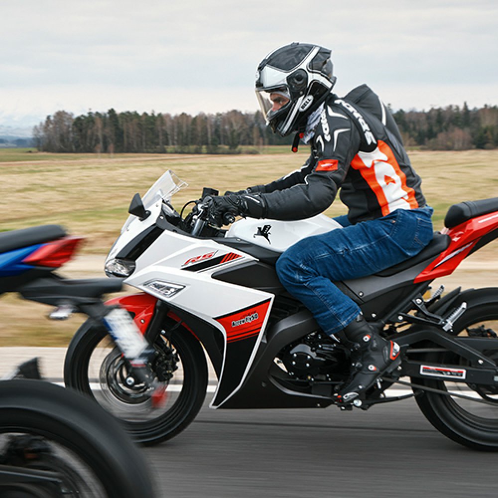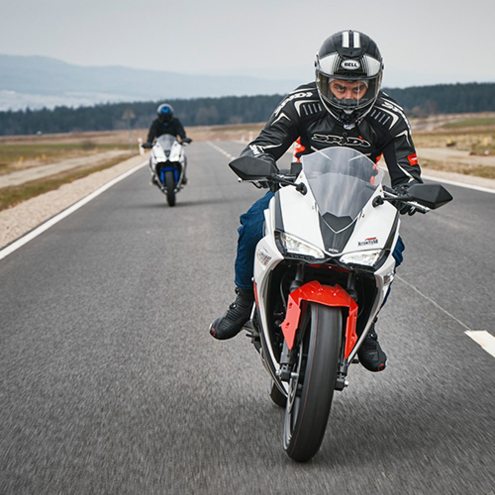 Romet Arrow Fly został zaprojektowany w duchu motocykli sportowo-turystycznych. Z jednej strony mamy agresywne i dynamiczne kształty oraz takie detale jak chociażby kierunkowskazy ukryte w owiewkach, a z drugiej - kierownica jest na tyle podniesiona, że z powodzeniem można przejechać wiele kilometrów i nadal być wypoczętym. Siedziska kierowcy i pasażera zostały od siebie oddzielone, co nie tylko dobrze wygląda, ale przede wszystkim zapewnia dodatkowy komfort i pewność prowadzenia. Kształt zbiornika paliwa pozwala wygodnie schować się za owiewką i schronić przed wiatrem.