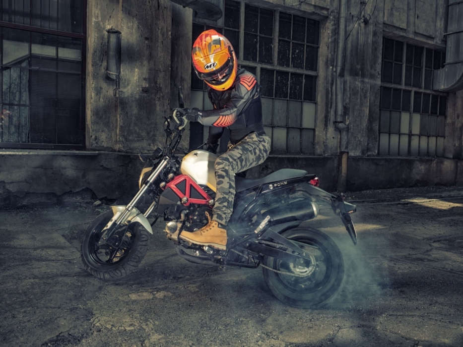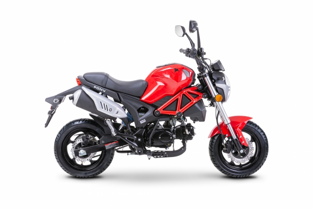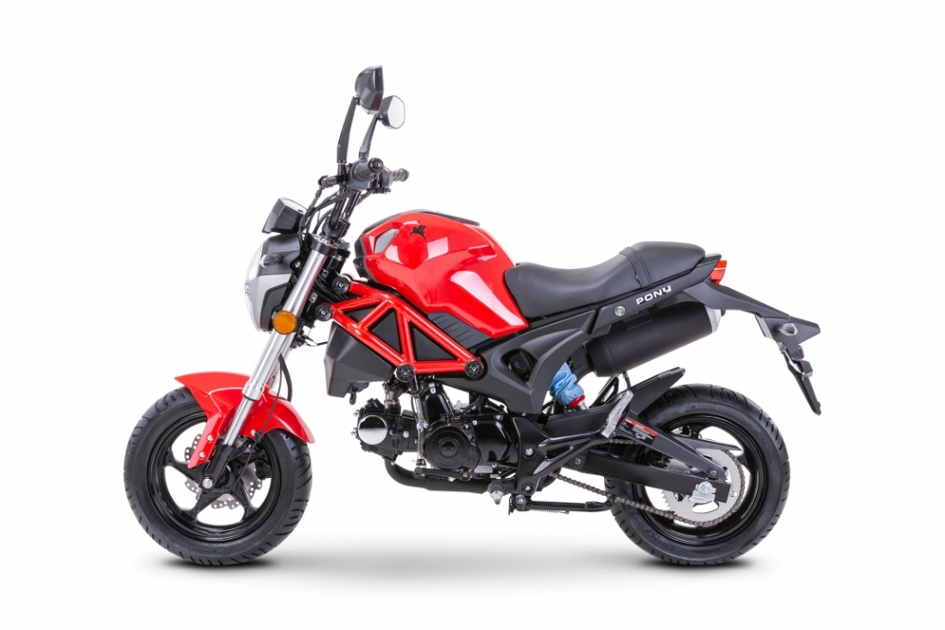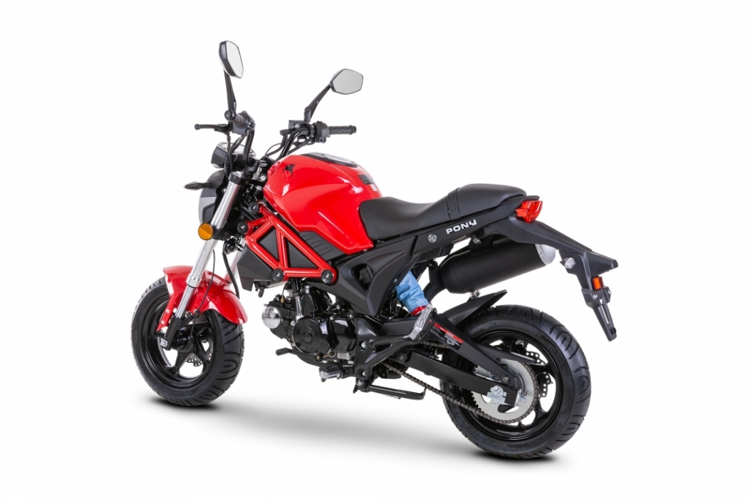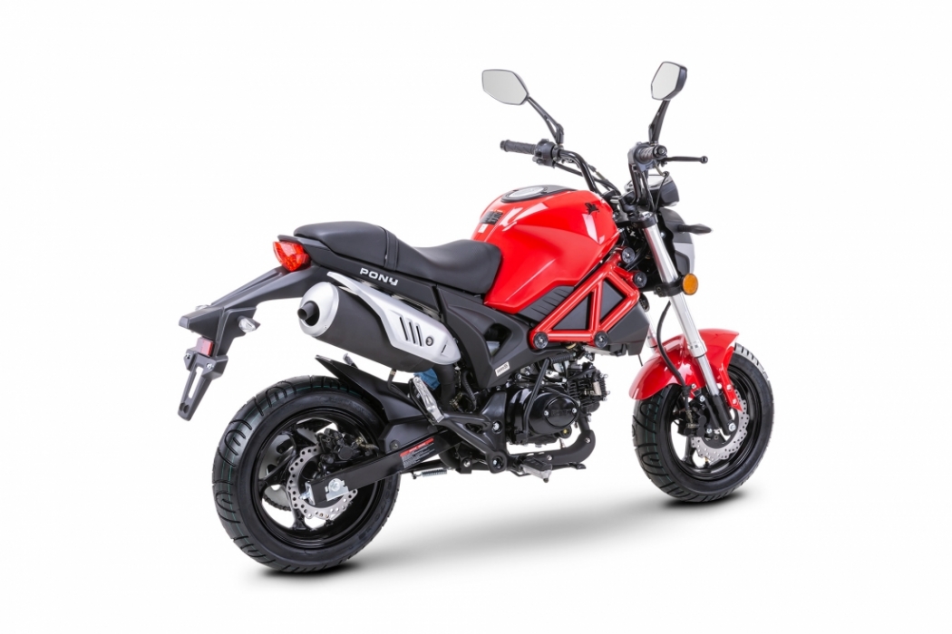 Romet Pony 50 posiada dynamiczny, nowoczesny wygląd. Agresywnie narysowane linie, aluminiowe felgi, nowoczesna lampa, do tego lakierowane na czerwono elementy kratownicowej ramy i dbałość o detale. Atrakcyjne dla początkujących motocyklistów będzie także niskie umieszczenie siedziska (z możliwością postawienia stopy płasko na podłożu, bez względu na wzrost kierowcy) i zaledwie 107 kg masy własnej.