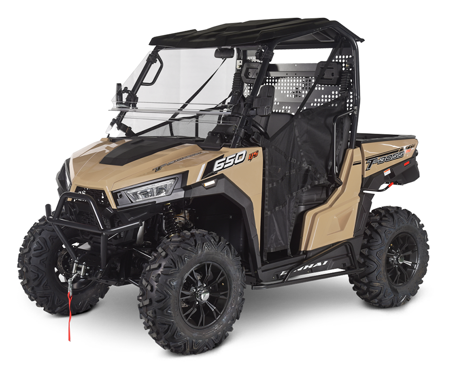 Pomimo bezkonkurencyjnej ceny, Linhai UTV 650 T-BOSS EPS oferuje bogate wyposażenie już w podstawie. Obejmuje ono odporny na promieniowanie UV twardy plastikowy dach, pełną przednią pleksi, masywny przedni zderzak, siatki bezpieczeństwa w drzwiach, poręcze dla pasażerów, zagłówki, hak holowniczy czy elektryczną wyciągarkę o uciągu 3000 funtów ze zdalnym sterowaniem.